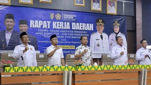 Bandar Lampung, Kanalpers.com – Anggota DPRD Provinsi Lampung, Syukron Muchtar, menghadiri pelantikan pengurus Karang Taruna empat kecamatan di Kabupaten Pringsewu, Sabtu (24/1/2026).