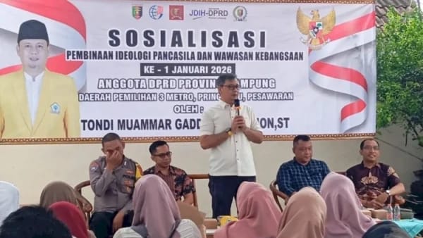 Hal itu ditegaskan Anggota DPRD Provinsi Lampung, Tondi Muammar Gaddafi Nasution, saat menggelar Sosialisasi Pembinaan Ideologi Pancasila dan Wawasan Kebangsaan (PIP–WK) di Kelurahan Kota Metro, Sabtu (17/1/2026).