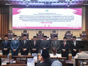 Palembang,kanalpers.com—DPRD Prov. Sumsel dengarkan Penjelasan Gubernur Sumatera Selatan terhadap 3 (Tiga) Rancangan peraturan daerah (Raperda) Prov. Sumsel pada Rapat Paripurna XVII (17) hari ini (Senin, 7/7). Rapat Paripurna dipimpin oleh Wakil Ketua DPRD Prov.Sumsel Raden Gempita, SH didampingi oleh Ketua DPRD Prov.Sumsel; Andie Dinialdie, SE, MM dan Wakil Ketua DPRD Prov.Sumsel; H. Nopianto, S.Sos, MM, dihadiri oleh Gubernur Sumsel H. Herman Deru, SH, MM, dan Sekretaris Daerah; Drs. H. Edward Chandra, MH, Sekretaris DPRD; H. Aprizal, S.Ag, SE, M.Si, unsur FORKOPIMDA, Para Kepala Dinas serta perwakilan Organisasi Perangkat Daerah (OPD) di lingkungan Pemerintah Provinsi Sumatera Selatan serta tamu undangan lainnya.
