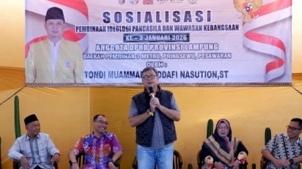 Bandar Lampung, Kanalpers.com – Anggota Komisi IV DPRD Provinsi Lampung, Tondi Muammar Gaddafi, kembali melaksanakan kegiatan Pembinaan Ideologi Pancasila (PIP) ke-2 pada Januari 2026. Kegiatan tersebut digelar di Kelurahan Iring Mulyo, Kecamatan Metro Timur, Kota Metro, Sabtu (31/1/2026).